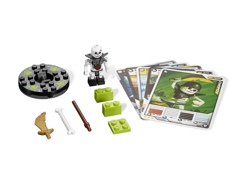 Győzd le pörögve az ellenfeled, és légy Spinjitzu mester! A téglához hasonló felépítésű, kőkemény Chopov védekező képességeit használja fegyverek és dicsőség elnyerésére. A készletben található négy harckártyával befolyásolhatod a küzdelmet. A készletben 1 LEGO minifigurát, fekete föld pörgettyűt, 3 fegyvert, 1 figurás kártyalapot, 4 harckártyát és LEGO elemeket találsz.