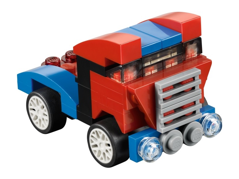 Kapcsolj ötösbe, és cirkálj a Mini versenygéppel! Rendezz be egy jelenetet bármelyik utcán a világos piros és kék formákkal, amelyek éles kontrasztban vannak a nagy fehér kerekekkel és a valódi gumiból készült abroncsokkal. Átalakíthatod robusztus terepjáróvá, vagy erős kamionná is, mindkettőt felszerelheted fényszóróval és hátsó lámpával. Erős, újra felhasználható tárolódobozban kerül forgalomba.