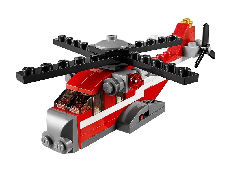Ez a masszív Vörös Villám szállító helikopter tökéletes nehéz terhek szállítására a távol eső hegyi területeken. Jól látható vörös, fehér és szürke festésével és erőteljes rotorjaival nagyszerű mentőhelikopterként is használható. A legjobb benne az, hogy hagyományos kétfedeles repülőgéppé vagy nagy erejű versenymotorcsónakká is átalakíthatod.