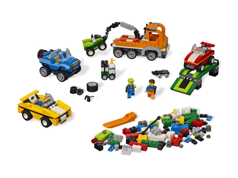 A 2 férfi minifigurát, kerekeket, műhelybe való szerszámokat és rengeteg színes alap építőelemet tartalmazó, felülmúlhatatlan LEGO járműkészlet tökéletes bevezető az autók, kamionok, versenyautók és hasonló járművek világába. Könnyen követhető építési útmutató és ötletadó gondolatokat tartalmazó füzet is tartozik hozzá.