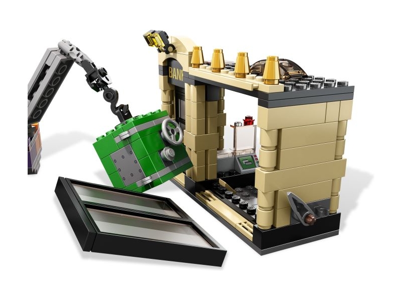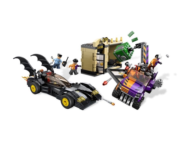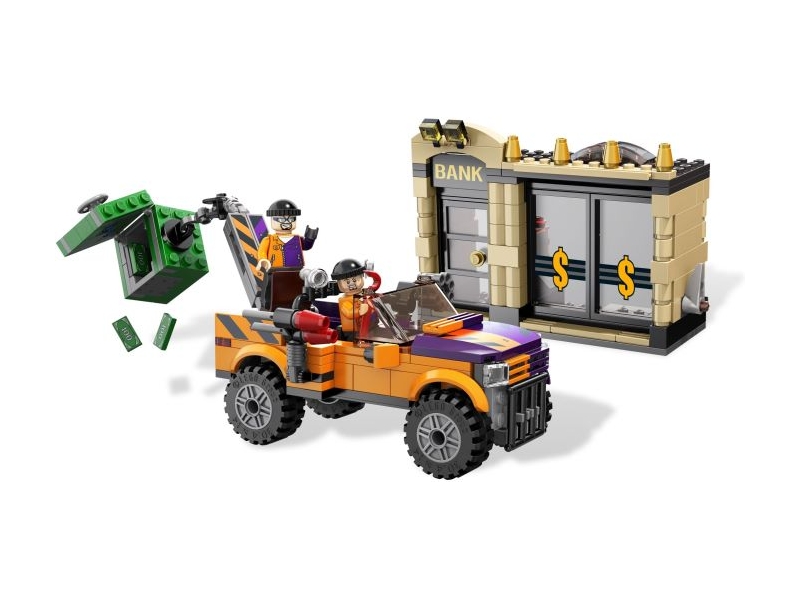 Mialatt Batman Batmobilján a bank felé halad, meglátja Kétarcút és gonosz bérenceit, akik sietve vontatnak el egy hatalmas széfet. Segíts Batmannak leállítani Kétarcú bohóckodását és visszavinni a széfet oda, ahová való. 5 minifigurát tartalmaz: Batman, Kétarcú, 2 bérenc és egy őr.