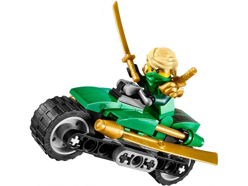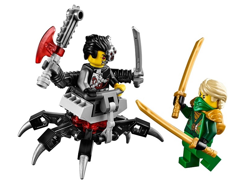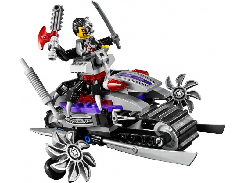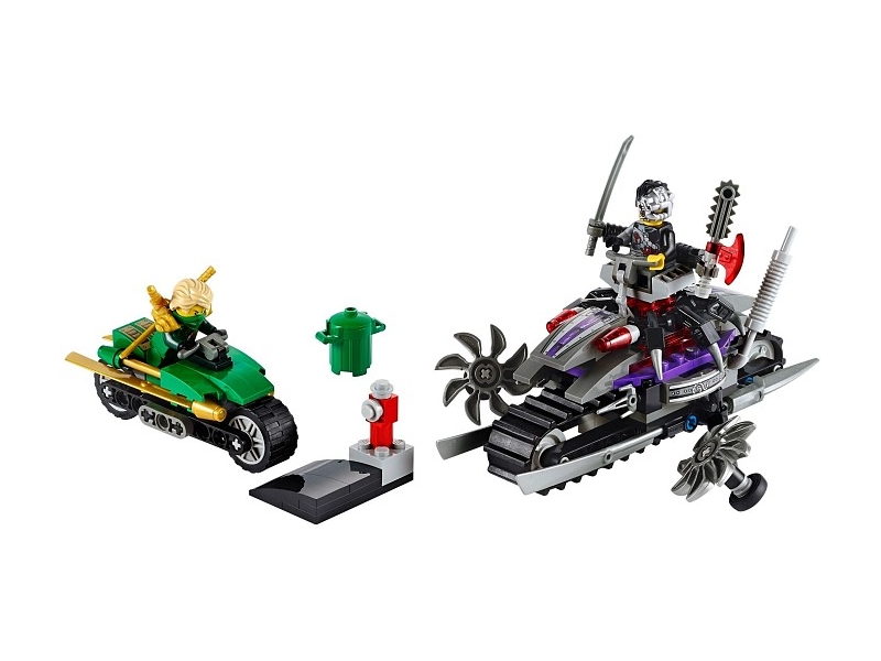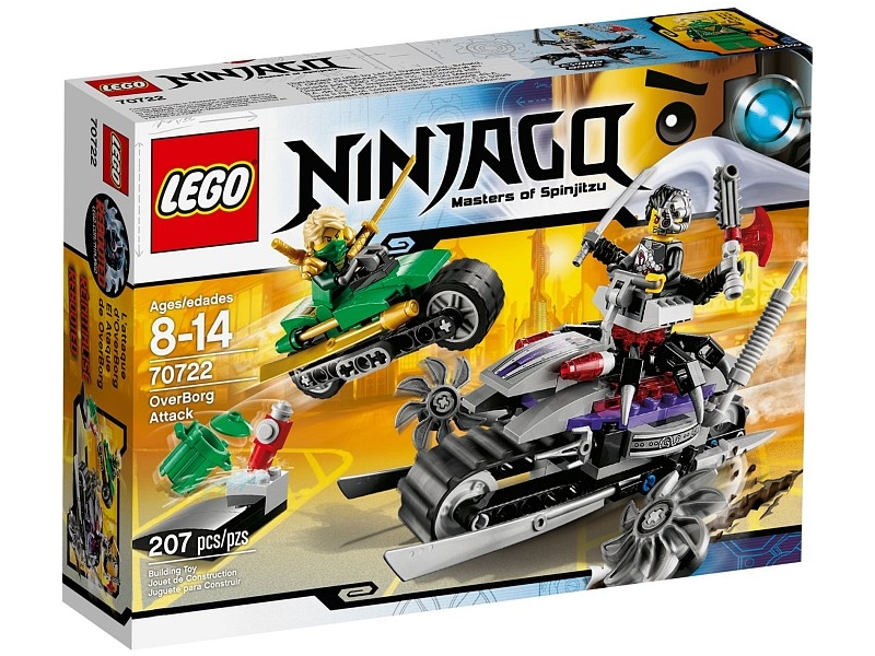 Cyrus Borg egy technológiai átalakuláson ment keresztül és OverBorg lett belőle, aki most szeretné uralma alá hajtani New Ninjago City-t és elfogni a Zöld Nindzsát. Segíts a Zöld Nindzsának a szabadulásban az arany pengékkel felszerelt, szuper-karcsú kerékpárján. Az OverBorg bekapcsolta mechanikus székét és most üldözést folytat terepjáró tank-kerékpárján, felkavarva az utat a két, gyorsan pörgő, szeletelő körfűrész pengéjével. Került el a tank-kerékpár lézereit, utána gyorsulj fel a rámpán és emelkedj OverBorg félelmetes masinája fölé! A csomagban 2 minifigurát találsz, fegyverekkel és kiegészítőkkel felszerelve: OverBorg és Lloyd.