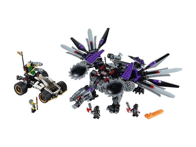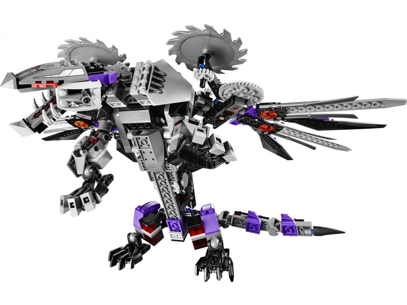 A mechanikus sárkány színre lép! Garmadon Szenszei és Lloyd megpróbál megszökni a Techno-pengével Nya autóján, de Wu Szenszei, aki gonosszá változott, és a Nindroidok szorosan a nyomukban repülnek a Mechanikus sárkányon. Kerüld el a Mechanikus sárkány hatalmas szárnyaira rögzített, gyorsan pörgő körfűrész pengéket, és ugorj félre az ágyúkból kilőtt lövedékek elől. Kerüld el mechanikus száját, hatalmas karmait és veszélyes, csapkodó farkát. A vezérlés a gonosz Wu kezében van, a két, alul elhelyezkedő, felfegyverzett Nindroid kész arra, hogy csatába vesse magát. Ne hagyd, hogy elfogják a nindzsát és a rejtett cellában tartsák fogva, hogy energiával lássa el a Mechanikus sárkányukat. Hajts el gyorsan Nya autóján és lődd ki a szigonyt, és a pöccintésre induló rakétákat a rejtett ágyúkból, és verd vissza őket. A csomagban 5 minifigurát és fegyvereket találsz: Garmadon Szenszei, Lloyd, Gonosz Wu, Cryptor tábornok és egy Nindroid.