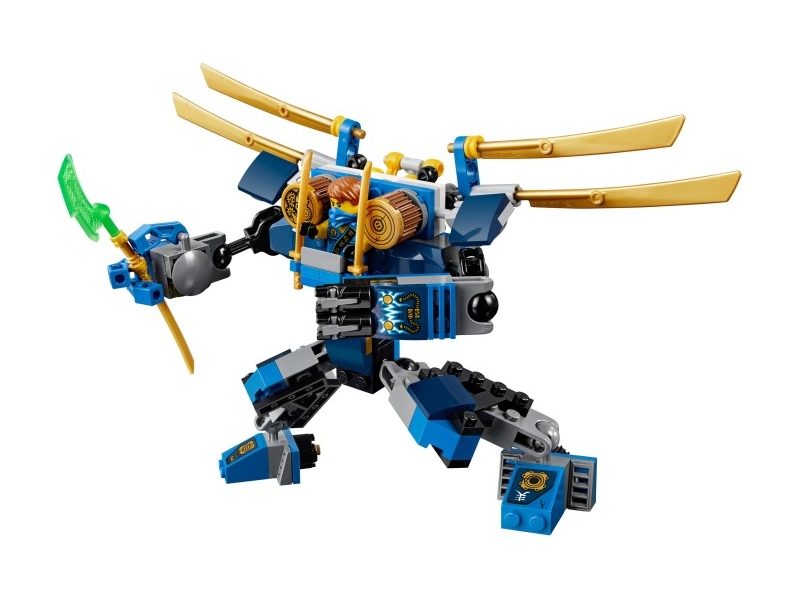 A gonosz Chope támadást indít és megpróbálja visszaszerezni a Jade pengét. Vágj vissza Jay segítőjeként a sokféleképpen beállítható Elektrorobottal! Helyezd Jay-t a pilótafülkébe, kapcsold be a klassz, kardszerű biztonsági övet és tárd szét az arany pengéket! Ügyelj Chope hatalmas lándzsájára és veszélyes nyílpuskás hajítógépére! Viszonozd a tüzet a jobboldali kettős kilövővel, bal kezeddel pedig kapaszkodj erősen az értékes Jade pengébe! A csomagban 2 minifigurát, válogatott fegyvereket és kiegészítőket találsz: Jay és Chope.