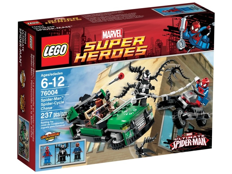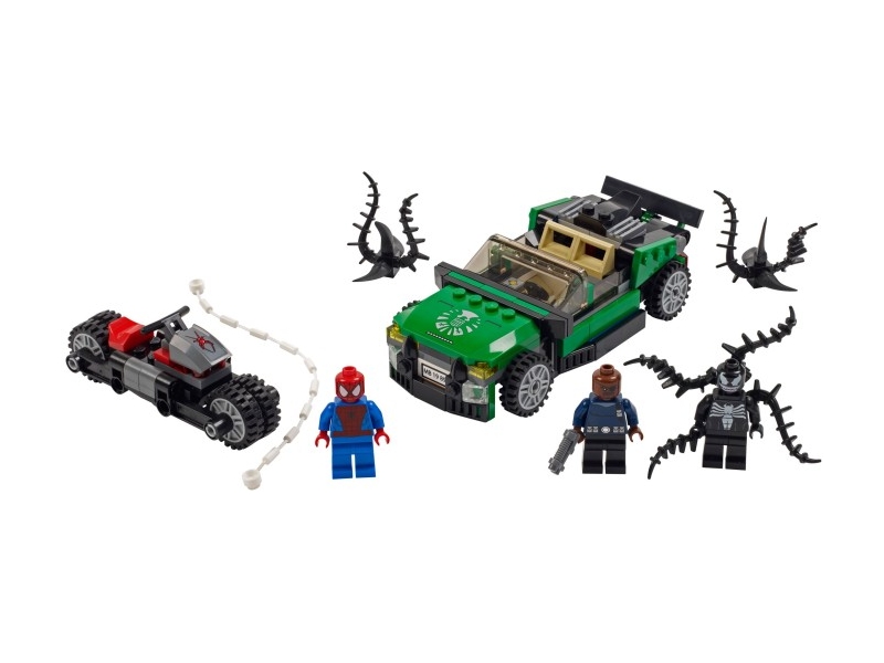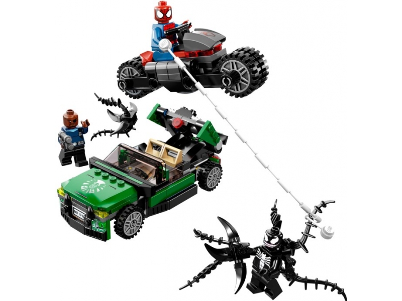 Venom™átvette Nick Fury S.H.I.E.L.D. nevű repülő autójának irányítását és szuper menekül. Küldd Pókembert™-t vagány pókmotorján a megmentésére! Segíts neki elfogni ezt a mérges gonosztevőt, és hozd vissza az autót a jófiúkhoz! Ügyelj Venom rosszindulatú szimbióta póktámadására! Használd mindkét járművön a behajtható kerekeket, hogy tökéletes legyen az üldözés a levegőben vagy a felszínen. 3 minifigurát találsz a dobozban: Pókember™, Venom™, és Nick Fury™ fegyverrel.