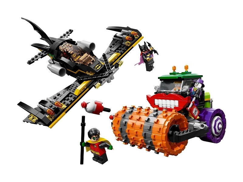 Joker és csatlósa őrült gőzhengerükkel rombolnak Gotham City-ben, és mindent összetörnek, ami útjukba kerül. Batgirl és Robin segítségre szorulnak, Batman™ már úton van, aki gyors és jól felfegyverzett Denevérszárnyán véget vet a bűnténynek. Használd a Denevérszárny 4, nyomásra induló rakétáját a dühöngő gőzhenger kiiktatására, majd állítsd támadó módba a szárnyakat és kapd el a rosszfiúkat, mielőtt bevethetnék a nevetőgáz bombákat. Vajon képes lesz Batman™ és hős barátai megmenteni Gotham City-t? A csomagban 5 minifigurát, és válogatott fegyvereket találsz: Batman™, Batgirl, Robin, Joker és Joker csatlósa.