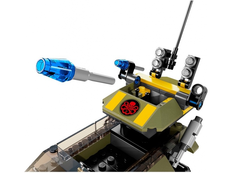 A gonosz Vörös Koponya megszerezte a kozmikus kockát és káoszt hoz a világra robusztus Hydra terepjáróján, amelyen működő kerékfelfüggesztés, forgatható lövegtorony és két, pöccintésre induló rakéta található. Ugorj fel a motorkerékpárra, és versenyezz Amerika Kapitánnyal, hogy ki ér először a helyszínre. Vajon le tudja fegyverezni áthatolhatatlan pajzsával és vissza tudja szerezni a kozmikus kockát? A csomagban 3 minifigurát, és válogatott kiegészítőket találsz: Amerika Kapitány, Vörös Koponya és egy Hydra csatlós.