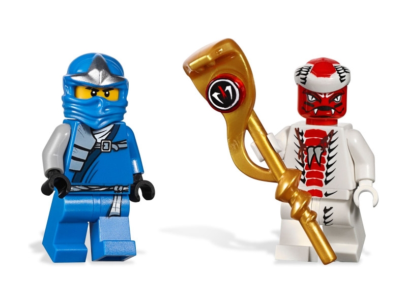 Jay szupergyors vadászgépével az égen csíkot húzva siet, hogy megtalálja az arany Fangpyre rudat és a hozzá tartozó ellenszérumot. Amint a szikla tetejére épült szentélyhez közeledik, Fangpyre Scout Snappa már vár rá. Indítsd a vadászgépeket egy bámulatos repülős támadásra! A készlet Jay ZX és Snappa figurát, kígyós szentélyt, arany Fangpyre rudat, 3 fegyvert és 2 fáklyát tartalmaz.