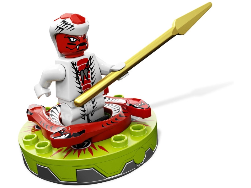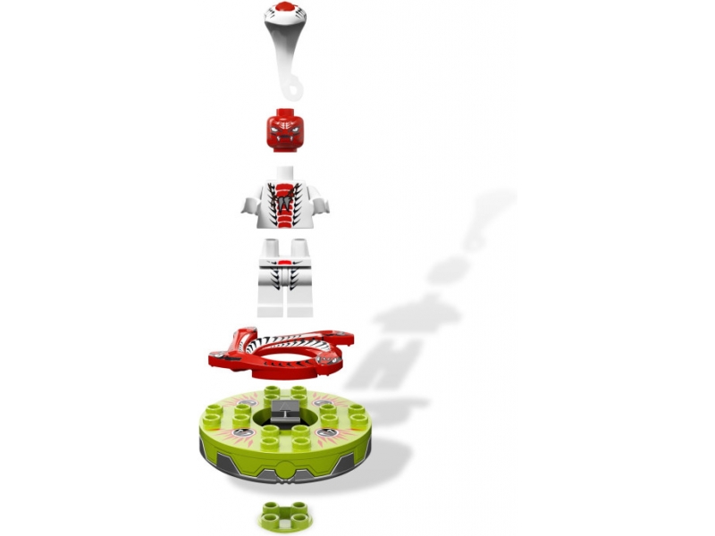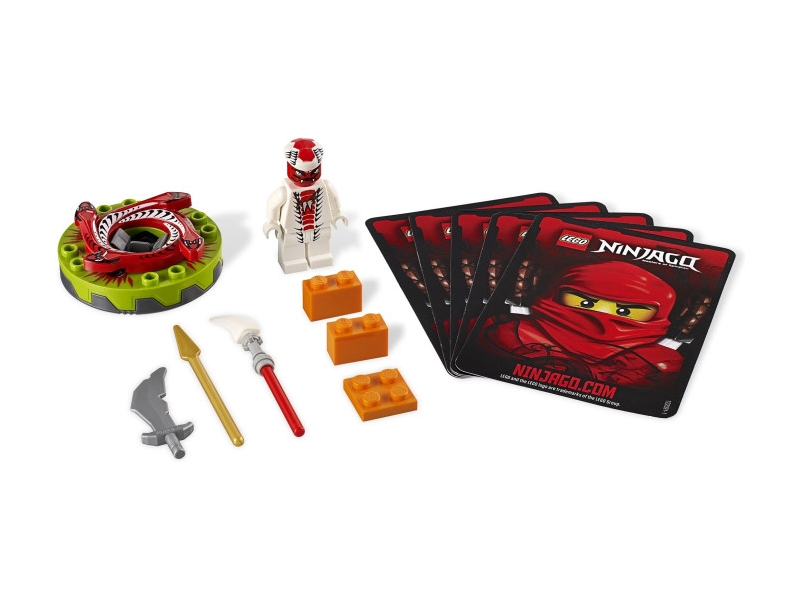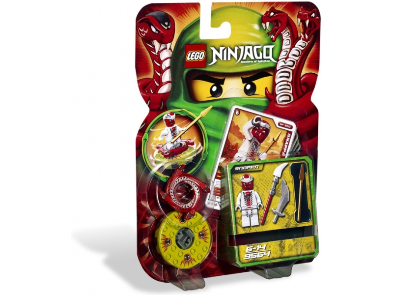 Győzd le pörögve az ellenfeled, és légy Spinjitzu mester! Snappa a Fangpyre kígyótörzs tagja és igazán nem kíméli méregfogait a csatában. Vajon tényleg bele tudja mélyeszteni méregfogát a nindzsákba? Te döntheted el! Alakítsd át a pörgettyűdet ezzel a vörös kígyókoronával. Utána a készletben található négy harckártyával befolyásolhatod a küzdelmet. A készletben Snappa minifigura, zöld pörgettyű, vörös korona, arany fegyver, 2 normál fegyver és karakter kártya is található.